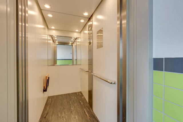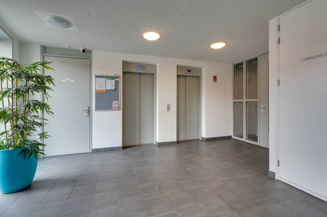 Begane grond: gemeenschappelijke entree met intercom, twee liften en toegang tot de inpandige fietsenbergingen.