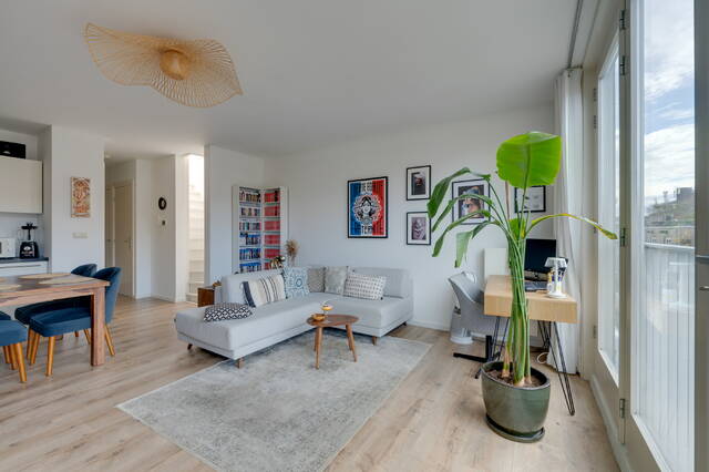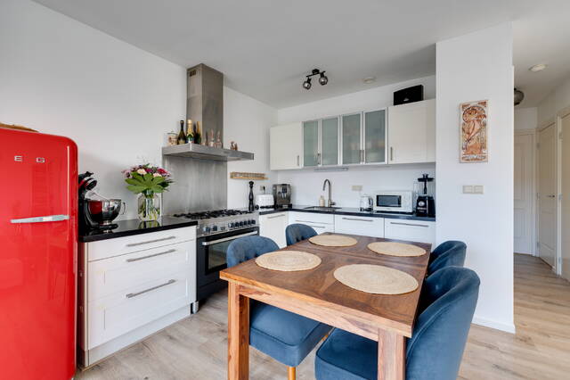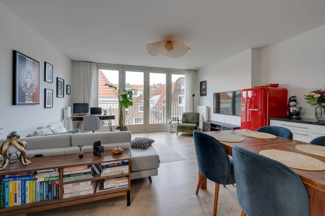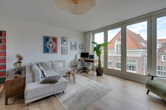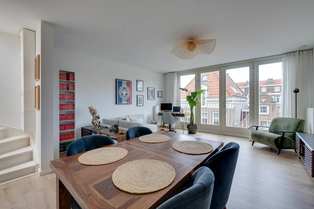 Living in the heart of the charming Jordaan, with the lively Amsterdam canals just a stone’s throw away and all the cozy neighborhood amenities within easy reach. This bright and well-designed one-bedroom apartment of approximately 56 m² on the third floor features not only a south-facing balcony (approx 6 m²) but also a spacious private rooftop terrace (approx 28 m²). From here, you can enjoy stunning views of several architectural landmarks such as the Westerkerk, the Bibliothèca Polska, and more. Thanks to its location on freehold land, you don’t have to worry about ground lease fees.