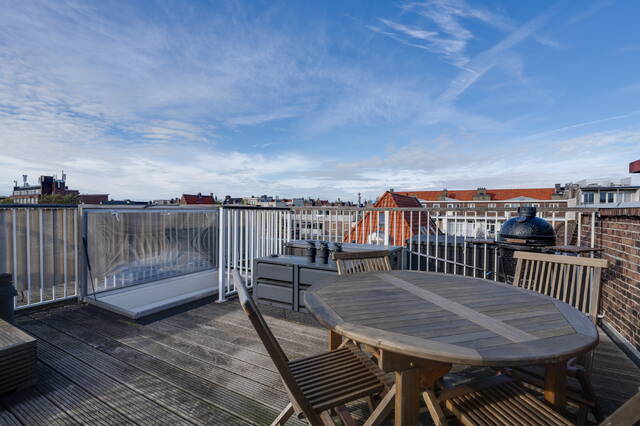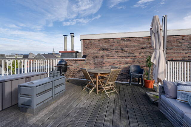 Met zowel een balkon op het zuiden op de derde verdieping als een riant privé dakterras op de vierde verdieping, gezamenlijk zo'n 34 m², is er altijd een fijne plek om van de zon en het uitzicht over de stad te genieten.