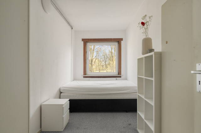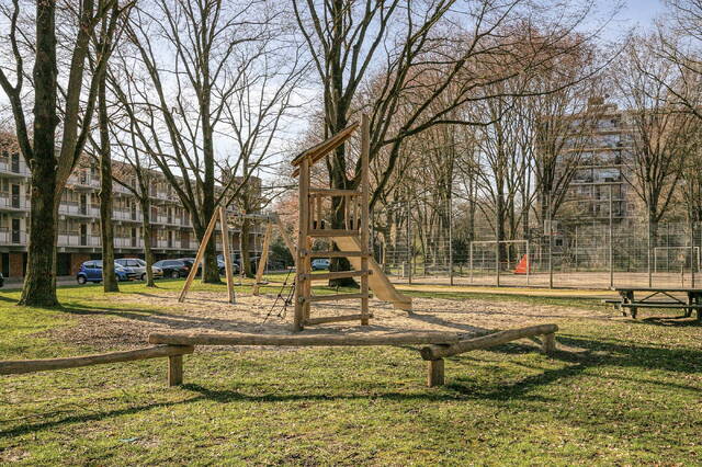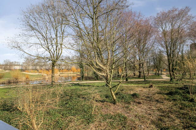 Het balkon van circa 6 m² ligt op het oosten en biedt een prettig uitzicht over het groen van het park achter het complex. Een fijne plek om de dag te beginnen met een kop koffie in de ochtendzon.