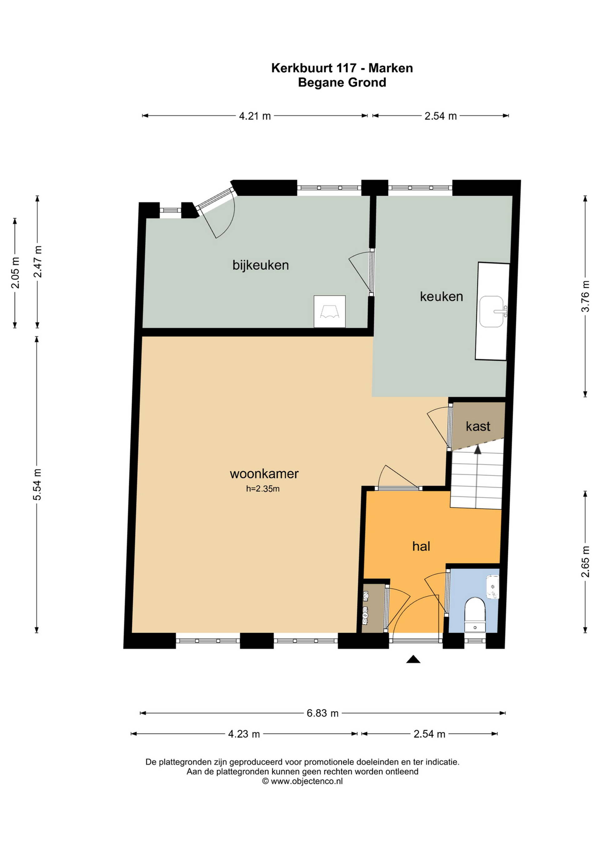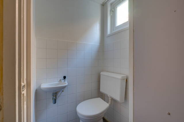De entree biedt toegang tot de hal met trapopgang, toiletruimte en een royale woonkamer met halfopen keuken voorzien van een eenvoudig keukenblok. De aangrenzende inpandige berging is zowel van binnen als buiten bereikbaar en kan dienst doen als bijkeuken, extra bergruimte of eventueel als werkplek.