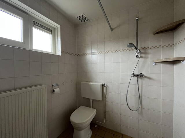 Op de eerste verdieping bevinden zich de overloop, drie slaapkamers en de badkamer. De badkamer is uitgerust met een toilet, douche en wastafel.
