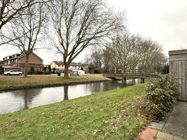 De achtertuin is gelegen op het noordwesten en beschikt over een achterom. De tuin grenst aan een voetpad langs het water, wat zorgt voor een vrij en groen uitzicht en een aangename buitenbeleving.