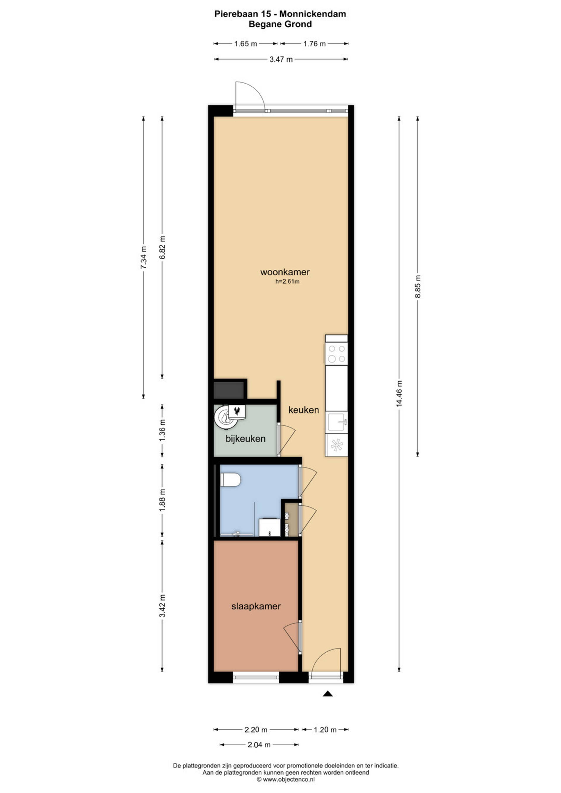 Het appartement is gelegen op de begane grond. Dit appartement biedt een woonkamer met een open keuken voorzien van diverse apparatuur. De knusse woonkamer geeft toegang tot buiten. Daarnaast is er 1 slaapkamer aanwezig alsmede een nette badkamer met douche, wastafel en toilet.