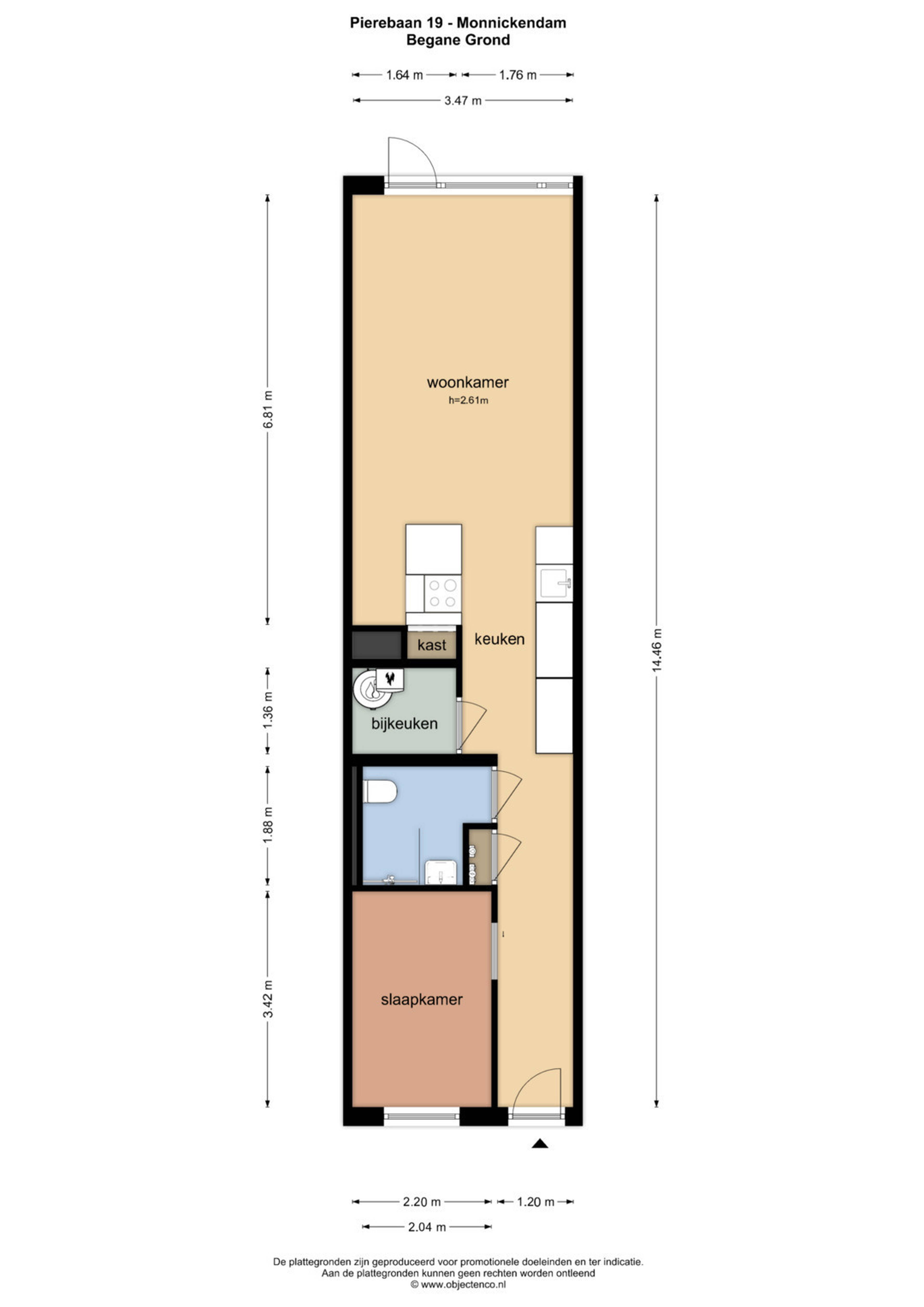 Het appartement is gelegen op de begane grond. Dit appartement biedt een woonkamer met een open keuken. De knusse woonkamer geeft toegang tot buiten. Daarnaast is er 1 slaapkamer aanwezig alsmede een nette badkamer met douche, wastafel en toilet.