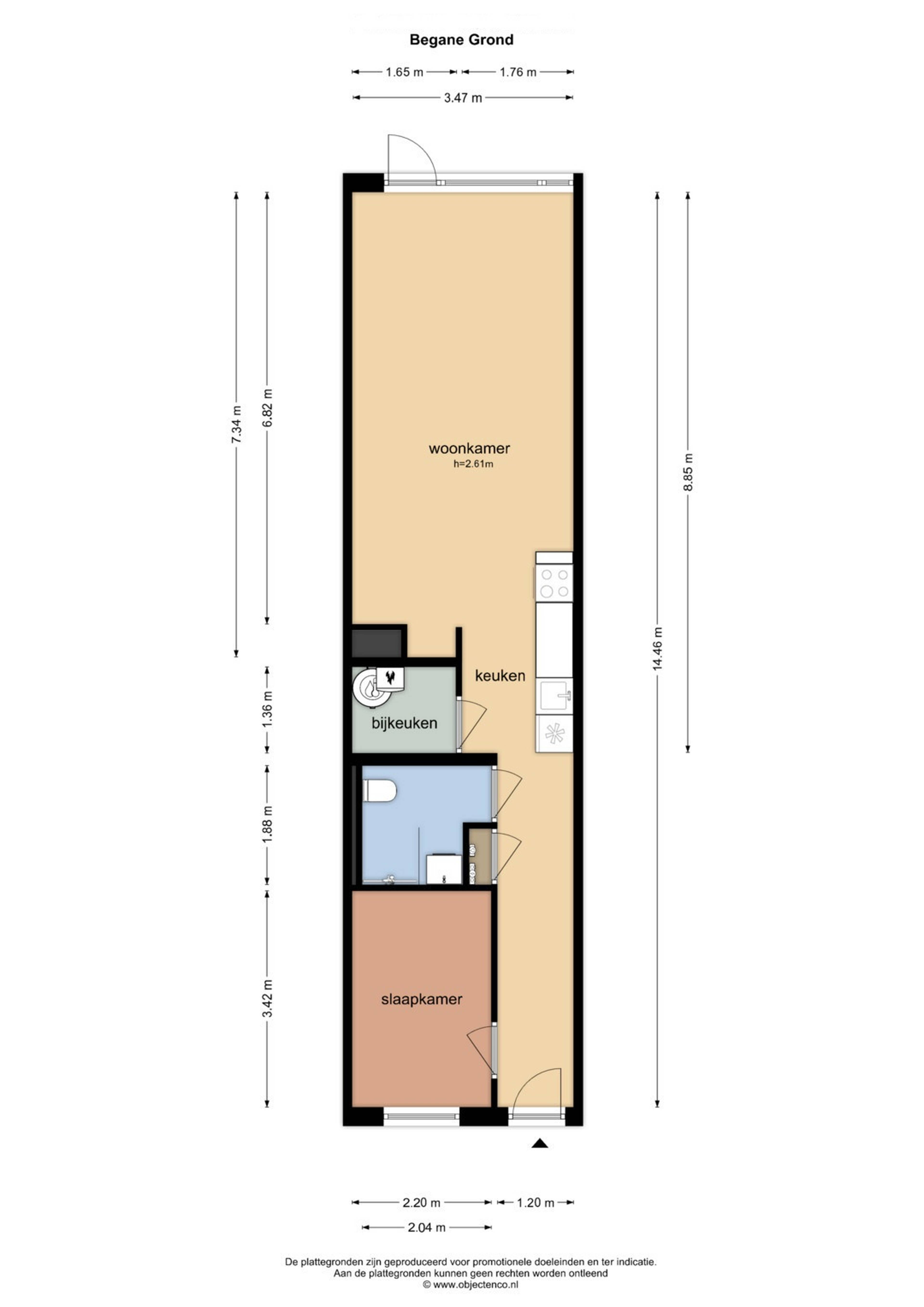 Het appartement is gelegen op de begane grond. Dit appartement biedt een woonkamer met een open keuken voorzien van diverse apparatuur. De knusse woonkamer geeft toegang tot een kleine buitenplaats, waar je lekker van het zonnetje kan genieten. Daarnaast is er 1 slaapkamer aanwezig alsmede een nette badkamer met douche, wastafel en toilet.