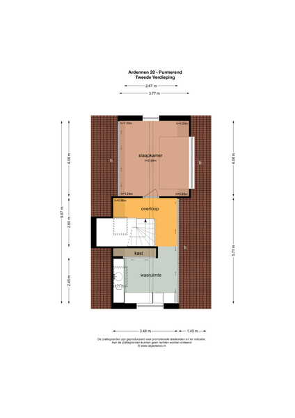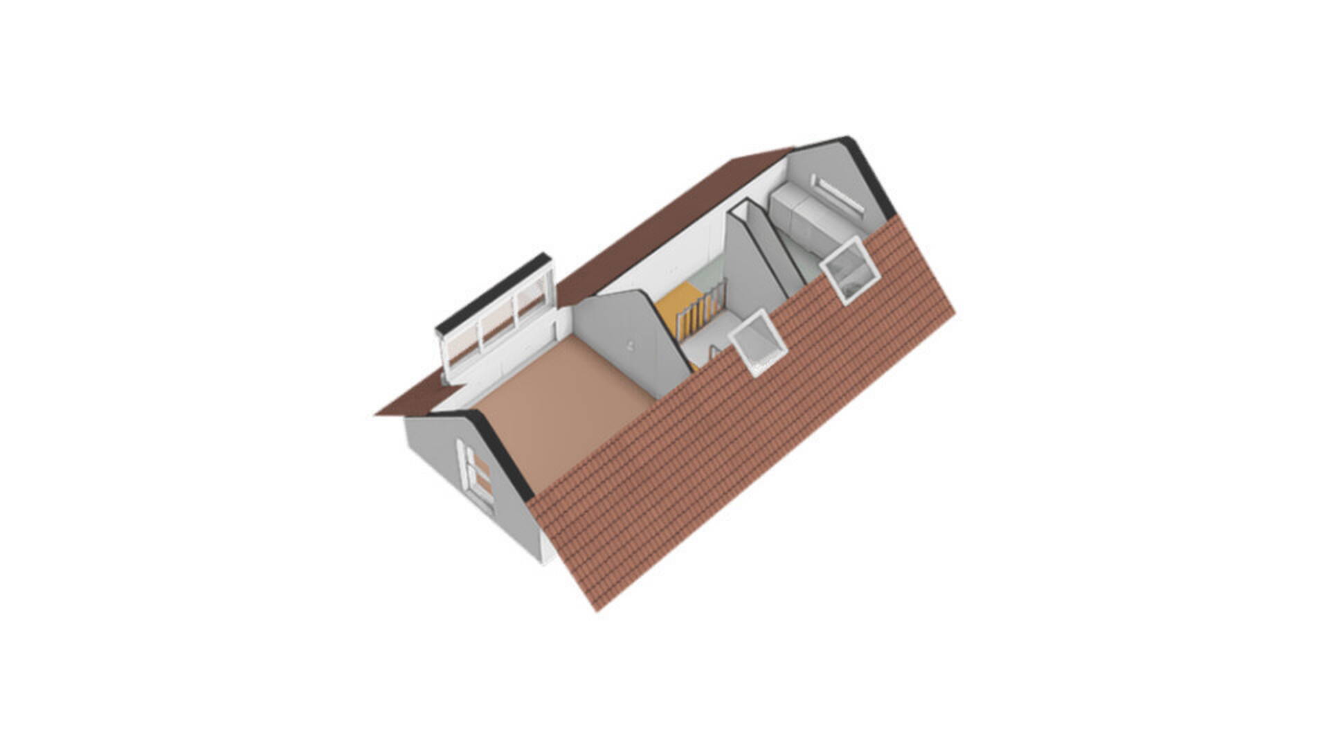 De tweede verdieping is bereikbaar via een vaste trap. Hier bevindt zich een kamer met dakkapel, momenteel ingericht als fitnessruimte, maar ook geschikt als vierde slaapkamer. Achter de knieschotten is veel bergruimte aanwezig. Daarnaast is er een aparte wasruimte met wastafel.