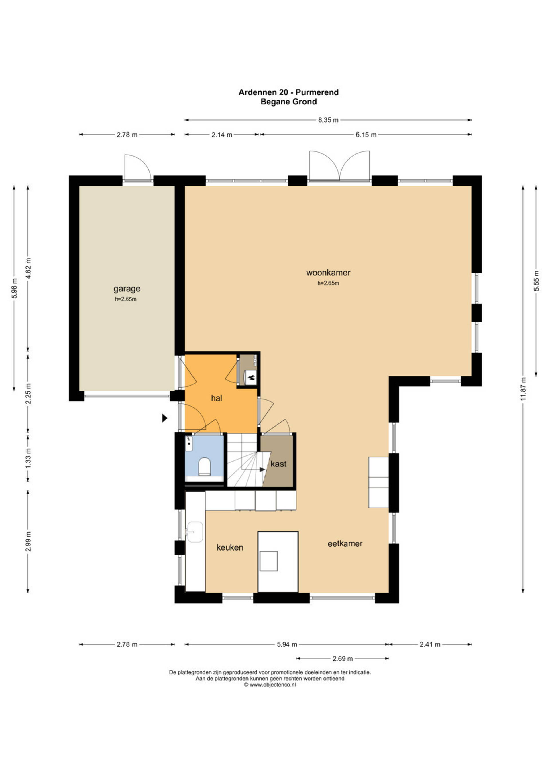Via de zij-entree komt u in de hal met meterkast, toilet met fonteintje en trapopgang naar de eerste verdieping.