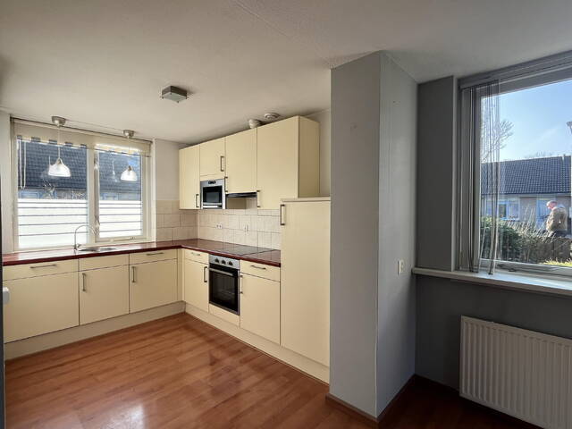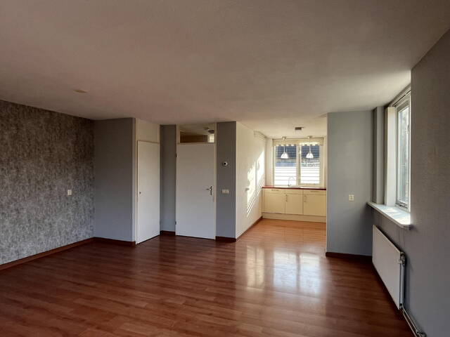 Via de entree komt u in de hal. Hier bevinden zich het toilet, voorzien van een fonteintje, de meterkast en de stadsverwarmingsunit. Vanuit hier is er toegang tot de lichte woonkamer, die zich kenmerkt door grote raampartijen aan de achterzijde en ramen aan de zijkant. De woonkamer beschikt daarnaast over een praktische trapkast.