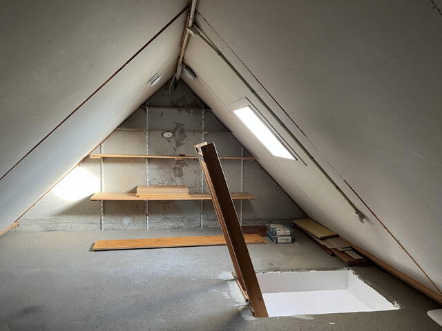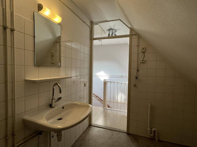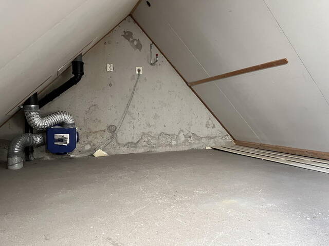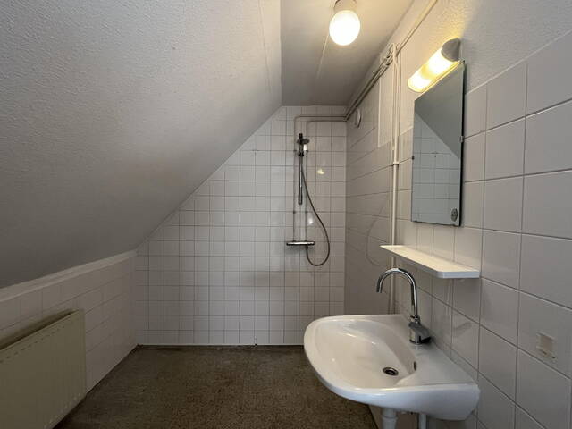 Op de eerste verdieping bevinden zich twee slaapkamers en de badkamer. De badkamer is eenvoudig uitgevoerd, maar royaal van opzet en voorzien van een wastafel, een inloopdouche en de aansluiting voor de wasmachine. Beide slaapkamers zijn voorzien van kunststof VELUX dakramen. De vliering is bereikbaar middels een vlizotrap en biedt extra bergruimte.