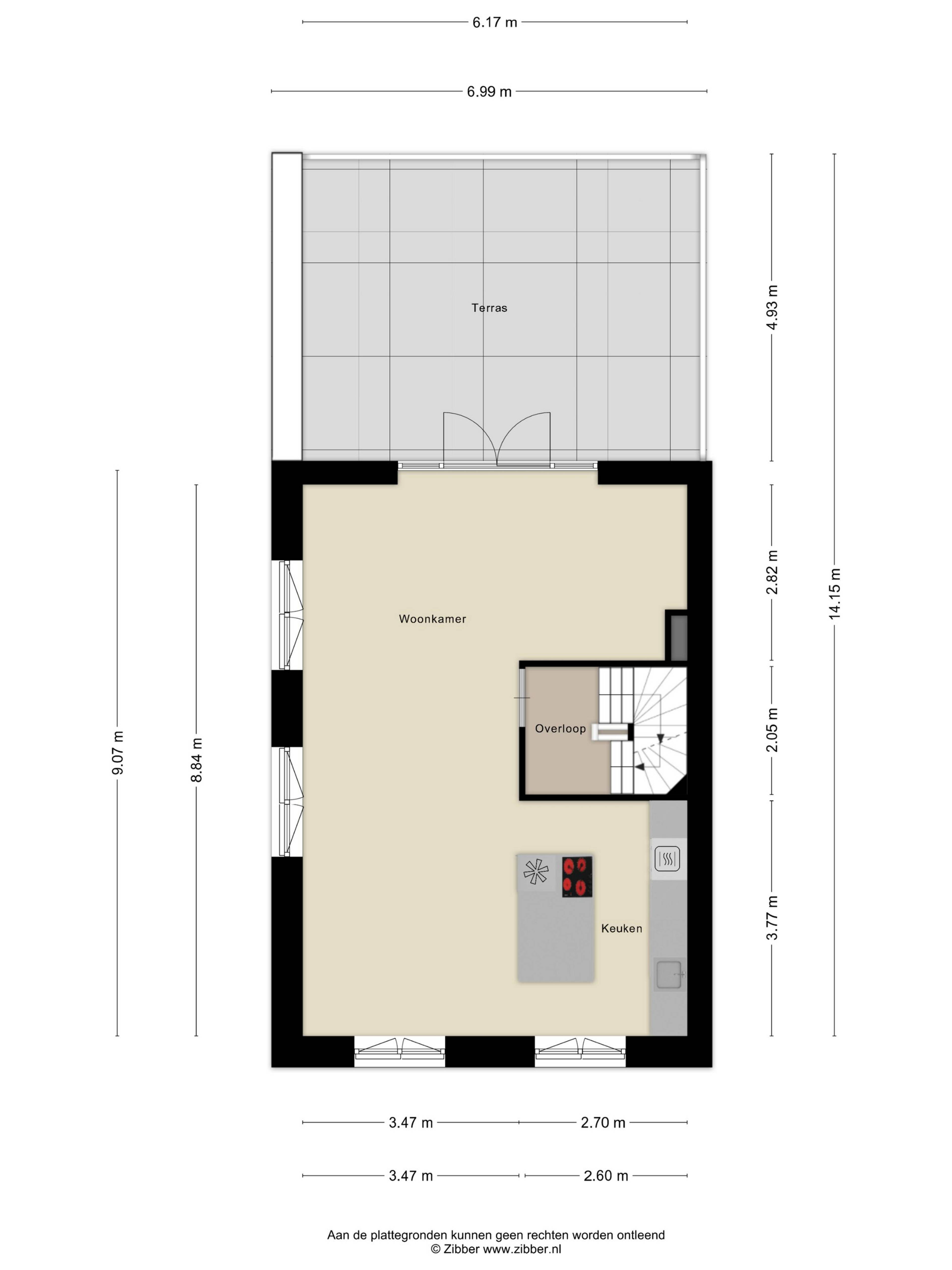 - Riant zonneterras van circa 35 m² op het noordwesten