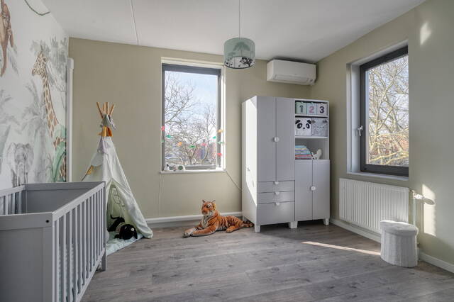 Met een luxe woonverdieping, een riant zonneterras van circa 35 m² op het noordwesten, vier (slaap)kamers, twee parkeerplaatsen en energielabel A+ is dit een toekomstbestendig huis waar comfort en duurzaamheid samenkomen. De woning is voorzien van zonnepanelen, stadsverwarming en maar liefst vier airco’s, één in de woonkamer en drie op de tweede verdieping.