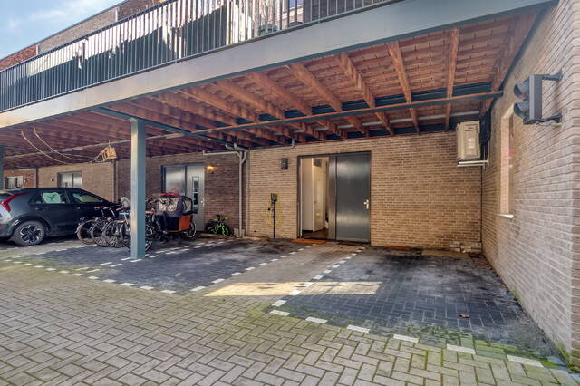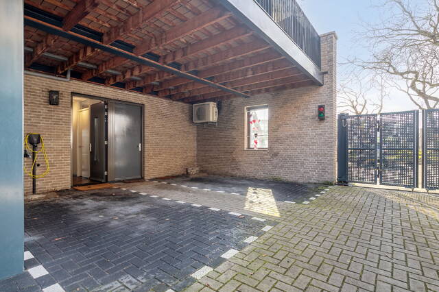 Achter de woning bevinden zich twee eigen parkeerplaatsen op een afgesloten binnenterrein dat uitsluitend via een elektrisch bedienbare toegangspoort bereikbaar is, wat zorgt voor extra privacy en veiligheid. In een wijk waar betaald parkeren geldt, is het een groot pluspunt om hier altijd over twee vaste parkeerplaatsen op eigen terrein te beschikken.