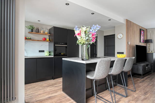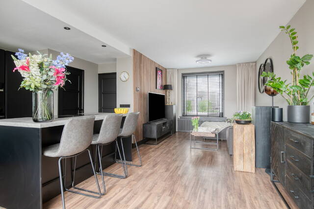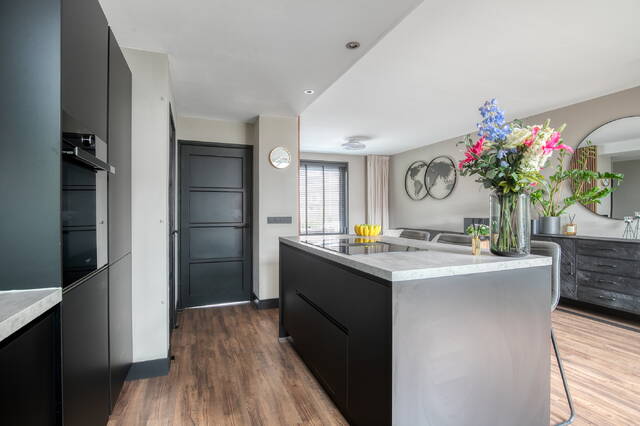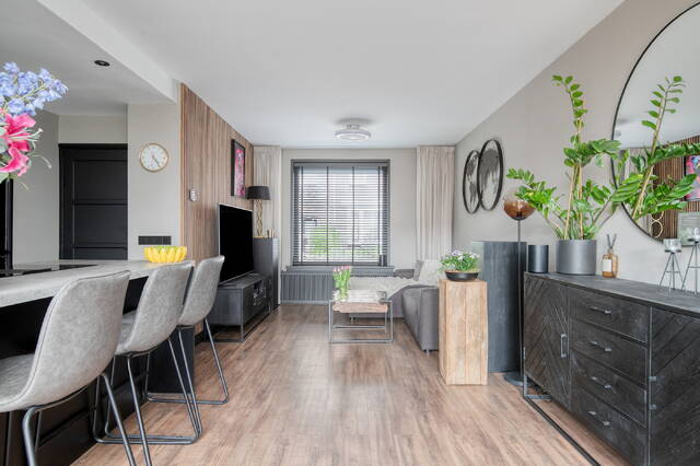 Binnen tref je een verrassend ruime en lichte leefruimte met als absoluut hoogtepunt de luxe woonkeuken. Deze moderne keuken is van alle gemakken voorzien en vormt het hart van de woning: een plek waar koken en samenzijn moeiteloos samenkomen. Aan de achterzijde bevindt zich een prachtige serre, die fungeert als een volwaardig verlengstuk van de woonkamer. Dankzij de grote raampartijen geniet je hier het hele jaar door van een fijne lichtinval en een directe verbinding met de tuin.