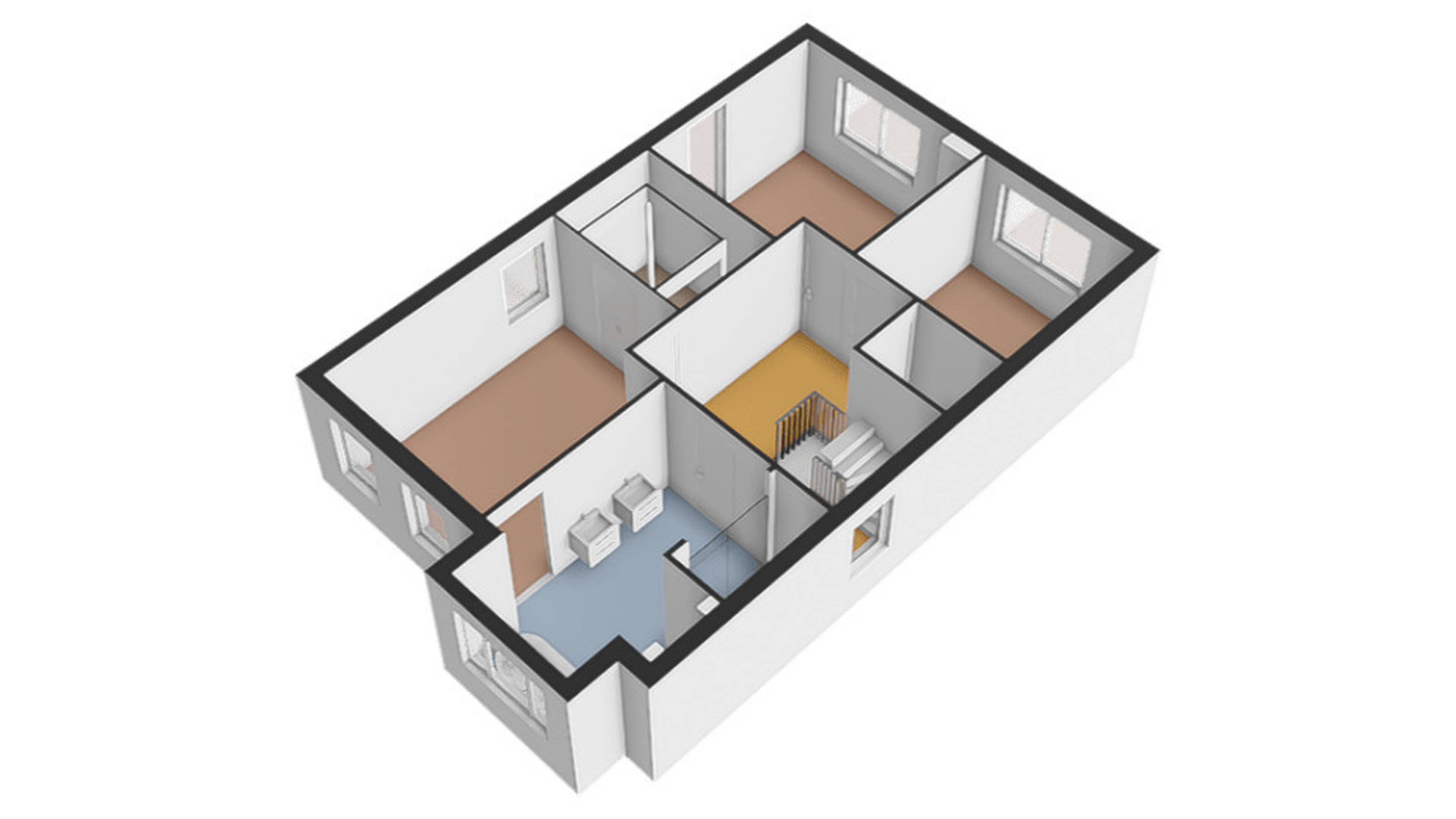 De tweede verdieping telt nog twee slaapkamers, beide met dakkapel en airconditioning. Daarnaast is er een tweede badkamer met douche, toilet en wastafel.