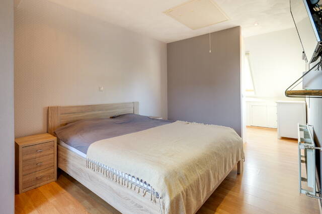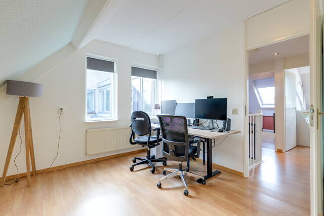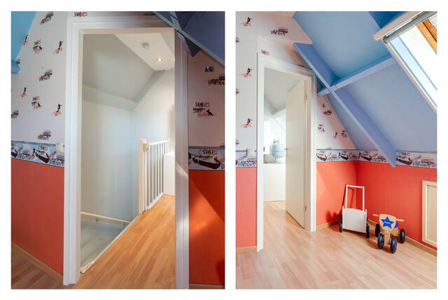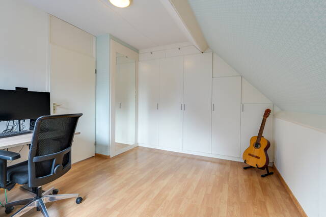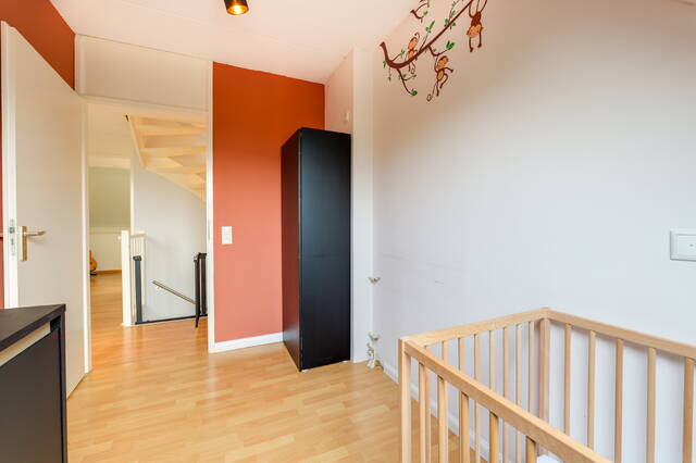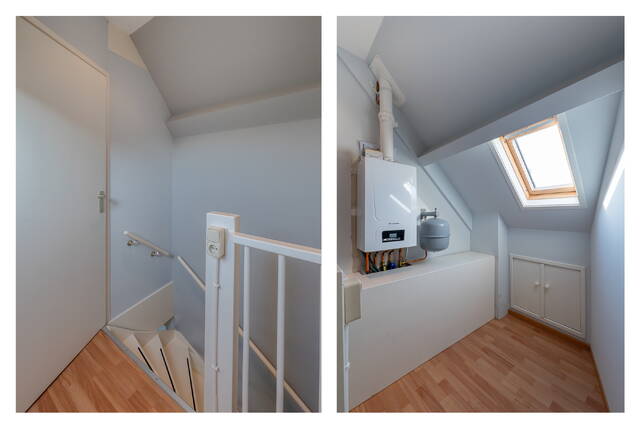 Via een vaste trap bereikt u de tweede verdieping. Op de overloop bevindt zich de cv-installatie (Remeha, 2024) en daarnaast is hier de vijfde slaapkamer gesitueerd.